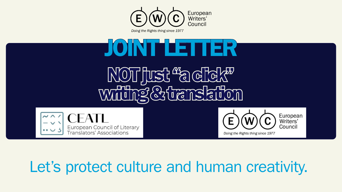 We, CEATL and EWC, represent around 260.000 individual authors and translators from 91 associations in the book and text sectors, who work as writers and literary translators in all genres in Europe and beyond.